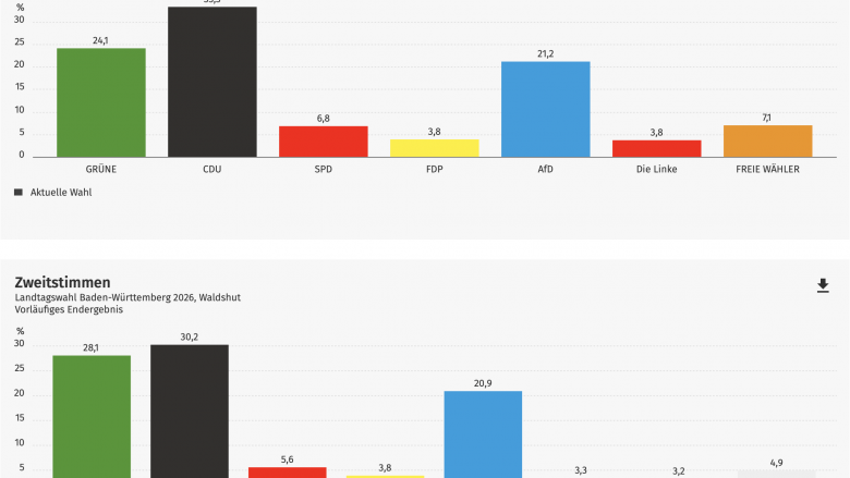 Mit einem starken Ergebnis hat die CDU im Wahlkreis Waldshut das Direktmandat zurückgewonnen. Simon Herzog konnte sich bei der Landtagswahl am 8. März 2026 mit 33,3% der Erststimmen durchsetzen und den bisherigen grünen Amtsinhaber als direkt gewählten Abgeordneten des Wahlkreises ablösen. Damit geht der Wahlkreis nach fünf Jahren wieder an die CDU zurück – ein klares Signal der Wählerinnen und Wähler für einen politischen Wechsel in der Region.
